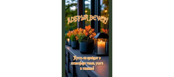 Открытка "Добрый вечер! Пусть он пройдет в атмосфере тепла, уюта и тишины!"