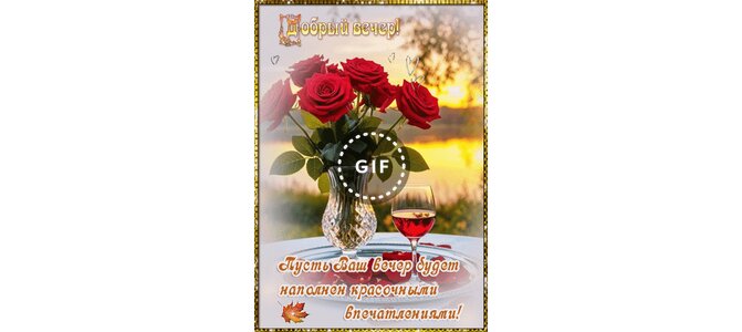 Анимированная открытка "Добрый вечер! Пусть ваш вечер будет наполнен красочными впечатлениями!"