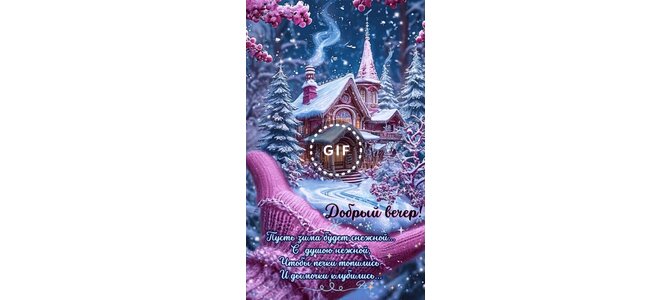 Анимированная открытка "Добрый вечер! Пусть зима будет снежной... с душою нежной, чтобы печки топились и дымочки клубились.."