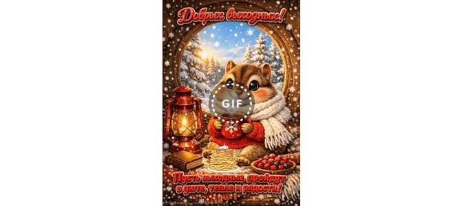 Анимированная открытка "Добрых выходных! Пусть выходные пройдут в уюте, тепле и радости!"