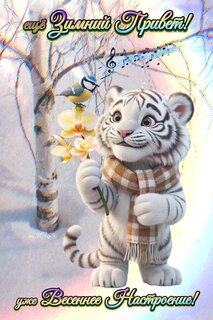 Открытка "Еще зимний привет! Уже весеннее настроение!"