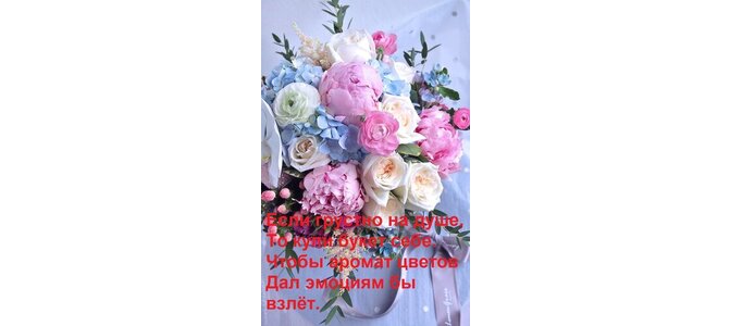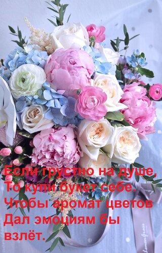 Открытка "Если грустно на душе, то купи букет себе. Чтобы аромат цветов Дал эмоциям бы взлёт."