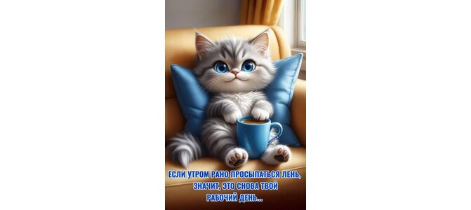 Открытка "ЕСЛИ УТРОМ РАНО ПРОСЫПАТЬСЯ ЛЕНЬ, ЗНАЧИТ, ЭТО СНОВА ТВОЙ РАБОЧИЙ ДЕНЬ..."