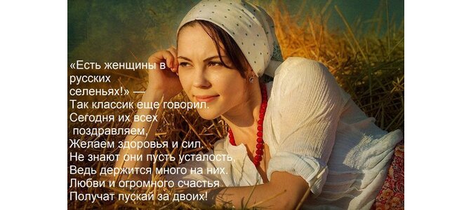 Теги:есть, женщины, русских, селеньях, так, классик, еще, говорил, сегодня, всех, поздравляем, желаем, здоровья