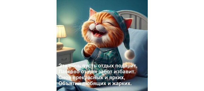 Теги:эта ночь пусть отдых подарит, ласково, дня, забот, избавит, снов, прекрасных, ярких, объятий любящих и жарких