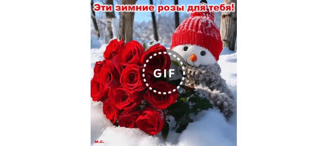 Анимированная открытка "Эти зимние розы для тебя!, (М. С.)"