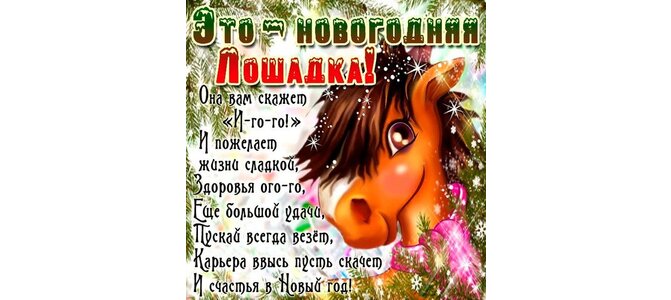 Это - Новогодняя Лошадка. Она вам скажет "И-го-го!" и пожелает жизни сладкой, здоровья ого-го. Еще большой удачи, пускай всегда везёт, карьера ввысь пусть скачет и счастья в Новый Год!