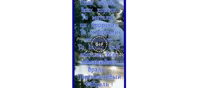 Анимированная открытка "Этот месяц всех короче. То метели он пророчит, то морозами стращает, то Весну нам обещает. Всех обма"
