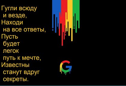 Теги:гугли всюду и везде, находи на все ответы, пусть будет легок путь к мечте, известны станут вдруг секреты
