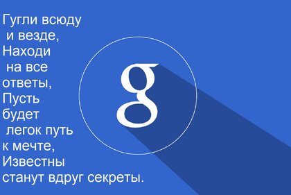 Теги:гугли всюду и везде, находи на все ответы, пусть будет легок путь к мечте, известны станут вдруг секреты