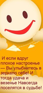 Открытка "И если вдруг плохое настроенье — вы улыбнитесь в зеркало себе! И тогда удача и везенье навсегда поселятся в судьбе!"