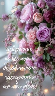 Красивый букет с надписью "Искренние пожелания безоблачного настроения только тебе!"