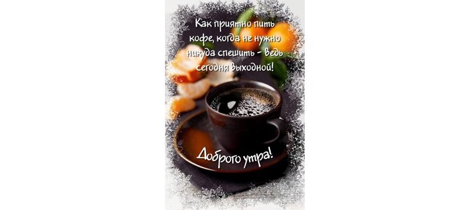 Открытка "Как приятно пить кофе, когда не нужно никуда спешить - ведь сегодня выходной!"