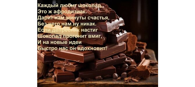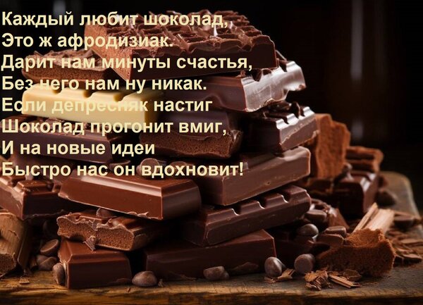 Теги:каждый любит шоколад, это ж афродизиак дарит нам минуты счастья, без, него, нам, никак, если, депресняк, настиг, шоколад, прогонит, вмиг, новые