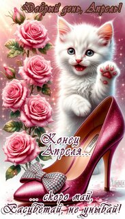 Теги:конец апреля, цветы, розы, красивая картинка, женская туфелька, котенок, милота, пушистик, скоро май, добрый день апрель