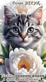 Теги:конец зимы, цветы, пионы, котик, пушистик, милота, красивая картинка, пожелания на каждый день, теплого февраля, яркого начала весны