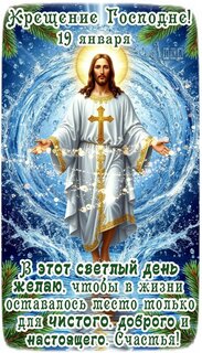 Крещение Господне! 19 января. В этот светлый день желаю, чтобы в жизни оставалось место только для чистого, доброго и настоящего. Счастья!