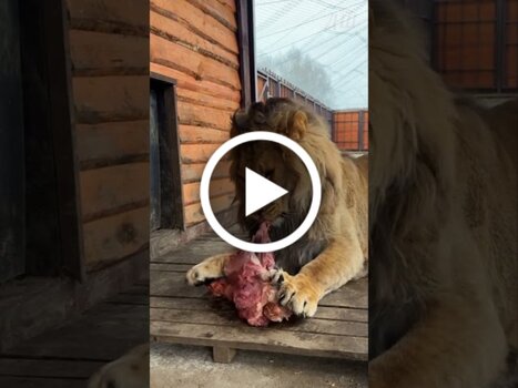 Видеооткрытка "Лев ШЕРХАН и его смачный обед. #шерхан_тайган #шерхан #лев #lion #animals #shortvideo"