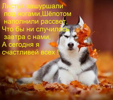 Теги:листья зашуршали под ногами, шёпотом наполнили рассвет, что бы ни случилось завтра с нами, а сегодня я счастливей всех