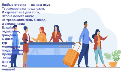 Открытка "Любые страны — на ваш вкус Турфирма вам предложит, И сделает всё для того, Чтоб в полёте никто не тр"
