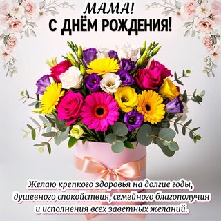 Теги:с днем рождения, день рождения, мама, маме, мамы, счастье, радость, улыбка, пожелания, поздравляю, цветы, букет, цветов