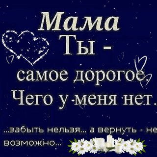 Мама, ты - самое дорогое чего у-меня нет. Забыть нельзя. а вернуть - не возможно...