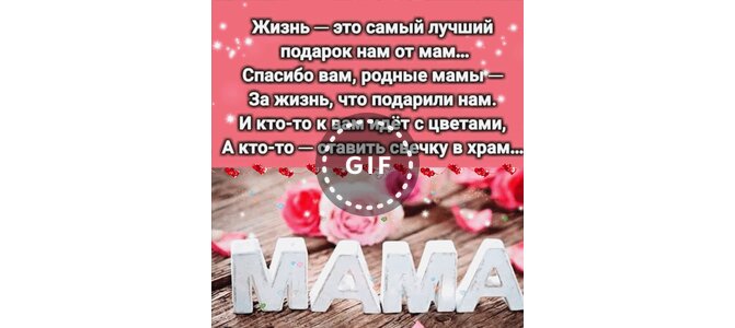 Анимированная открытка "МАМА. Жизнь - это самый лучший подарок нам от мам... Спасибо вам, родные мамы - за жизнь, что подари"
