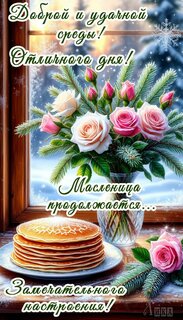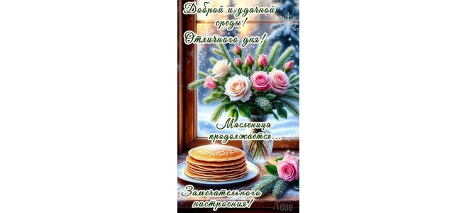 Теги:масленица, блины, среда, отличного дня, цветы, розы, отличного настроения, про настроение, доброй среды, удачной среды, снег, зима, красивая картинка