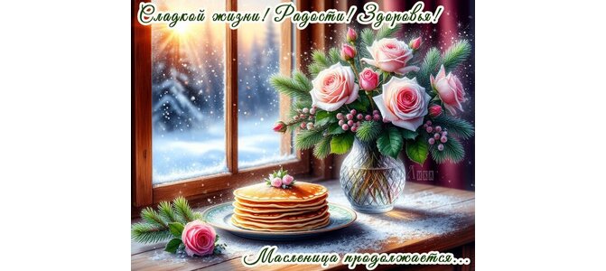 Теги:масленица продолжается, мсленица, блины, цветы, розы, снег, зима, красивая картинка, здоровья, сладкой жизни, добра
