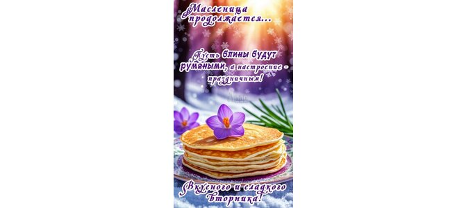 Теги:масленица продолжается вторник, вторник, масленица, снег, зима, лес, блины, цветы, крокусы, красивая картинка, вкусных блинов, сладкой жизни, позитива