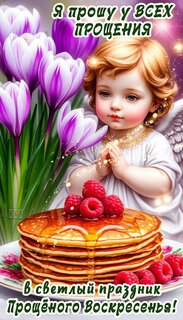 Теги:масленица проводы прощеное воскресенье, масленица, прощеное воскресенье, ангелочек, блины, фрукты, малина, цветы, крокусы, я прошу у всех прощения в светлый праздник прощеного воскресенья