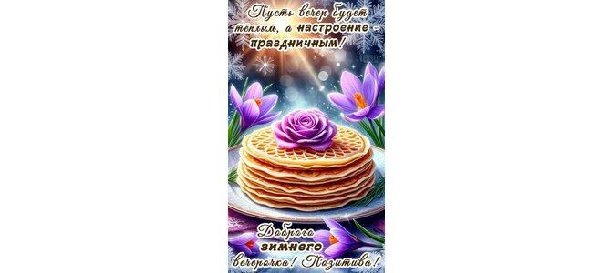 Теги:масленица, вечер, цветы, блины, розы, крокусы, снег, зима, красивая картинка, добрый вечер, позитива, пожелания на каждый день, праздничного настроения