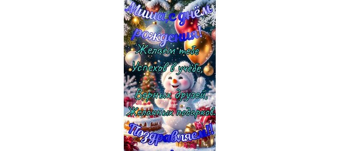 Открытка "Миша с днём рождения. Желаем тебе успехов в учёбе"