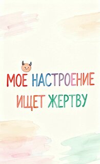 Милая и ироничная иллюстрация в акварельном стиле с надписью на русском языке «Мое настроение ищет жертву». На светлом фоне с мягкими пастельными мазками изображена маленькая забавная мордочка существа с рожками. Картинка передает юмористическое отношение к переменчивому настроению, подходит для использования в качестве мема, стикера или забавной открытки для соцсетей.
