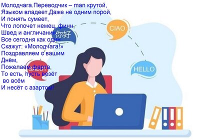 Открытка "Молодчага. Переводчик – man крутой, Языком владеет, Даже не одним порой, И понять сумеет, Что лопочет"