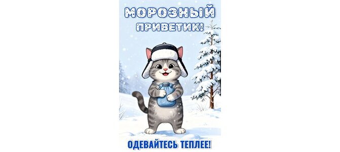 Открытка "МОРОЗНЫЙ ПРИВЕТИК! ОДЕВАЙТЕСЬ ТЕПЛЕЕ!"