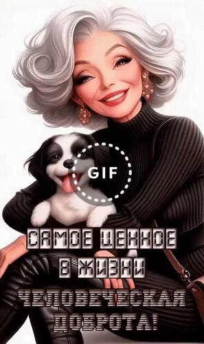 Теги:мотивация, мудрость, жизнь, женщина со щенком, анимация, гифка, красивая анимация, пожелания на каждый день, про добро