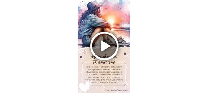 Видеооткрытка "Мотивация Женщине. Мне не нужно спешить, доказывать или сравнивать себя с другими. Я двигаюсь в свое"