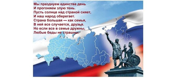 Теги:мы празднуем единства день и прогоняем злую тень пусть солнце над страной сияет, и наш народ оберегает страна большая как семья, в ней все случается, друзья но если все в семье дружны, любые беды не страшны
