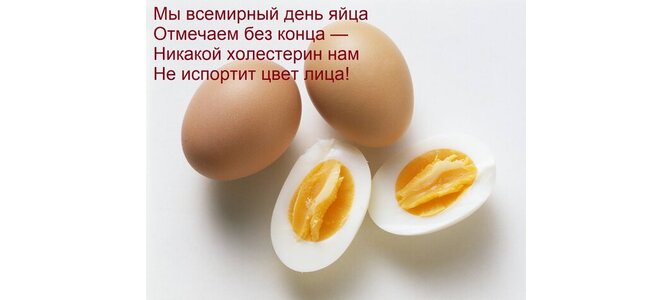 Теги:мы всемирный день яйца отмечаем без конца никакой холестерин нам не испортит цвет лица