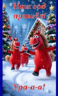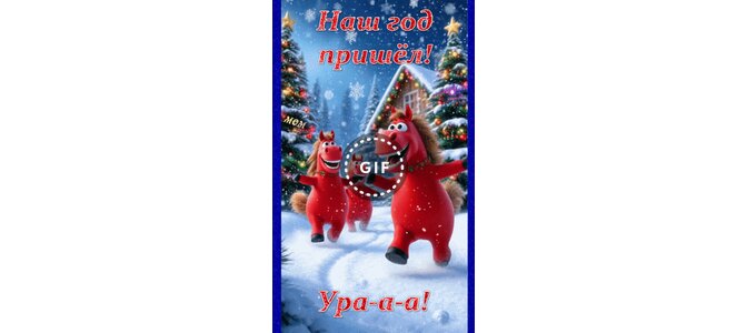 Анимированная открытка "Наш год пришёл! Ура-а-а!"