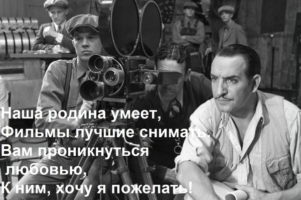 Открытка "Наша родина умеет, фильмы лучшие снимать. Вам проникнуться любовью, к ним, хочу я пожелать!"