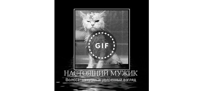 Анимированная открытка "Настоящий мужик. Волосатая грудь и уверенный взгляд."