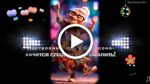 Видеооткрытка "Настроение, как у Карлсона, хочется сладкого и пошалить!"