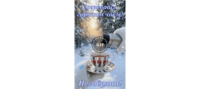 Анимированная открытка "Не мёрзни! Согревайся горячим чаем!"