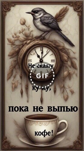 Анимированная открытка "Не скажу ку-ку, пока не выпью кофе!"