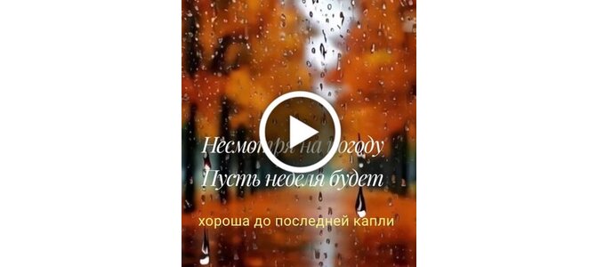 Видеооткрытка "Не смотря на погоду, пусть неделя будет хороша до последней капли."