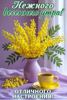 Открытка "Нежного весеннего утра! Отличного настроения!"