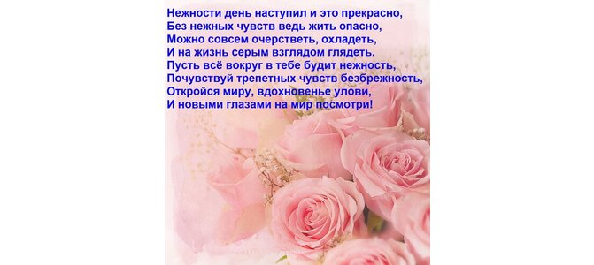 Открытка "Нежности день наступил и это прекрасно, Без нежных чувств ведь жить опасно, Можно совсем очерстветь,"