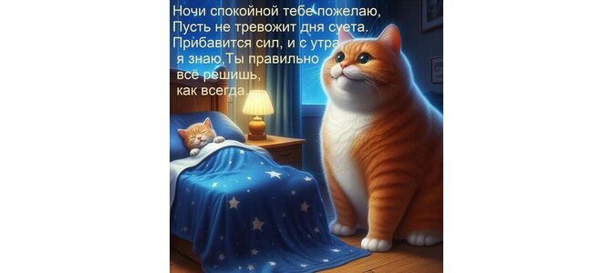 Теги:ночи спокойной тебе пожелаю, пусть не тревожит дня суета прибавится сил, и с утра, я знаю, ты правильно всё решишь, как всегда